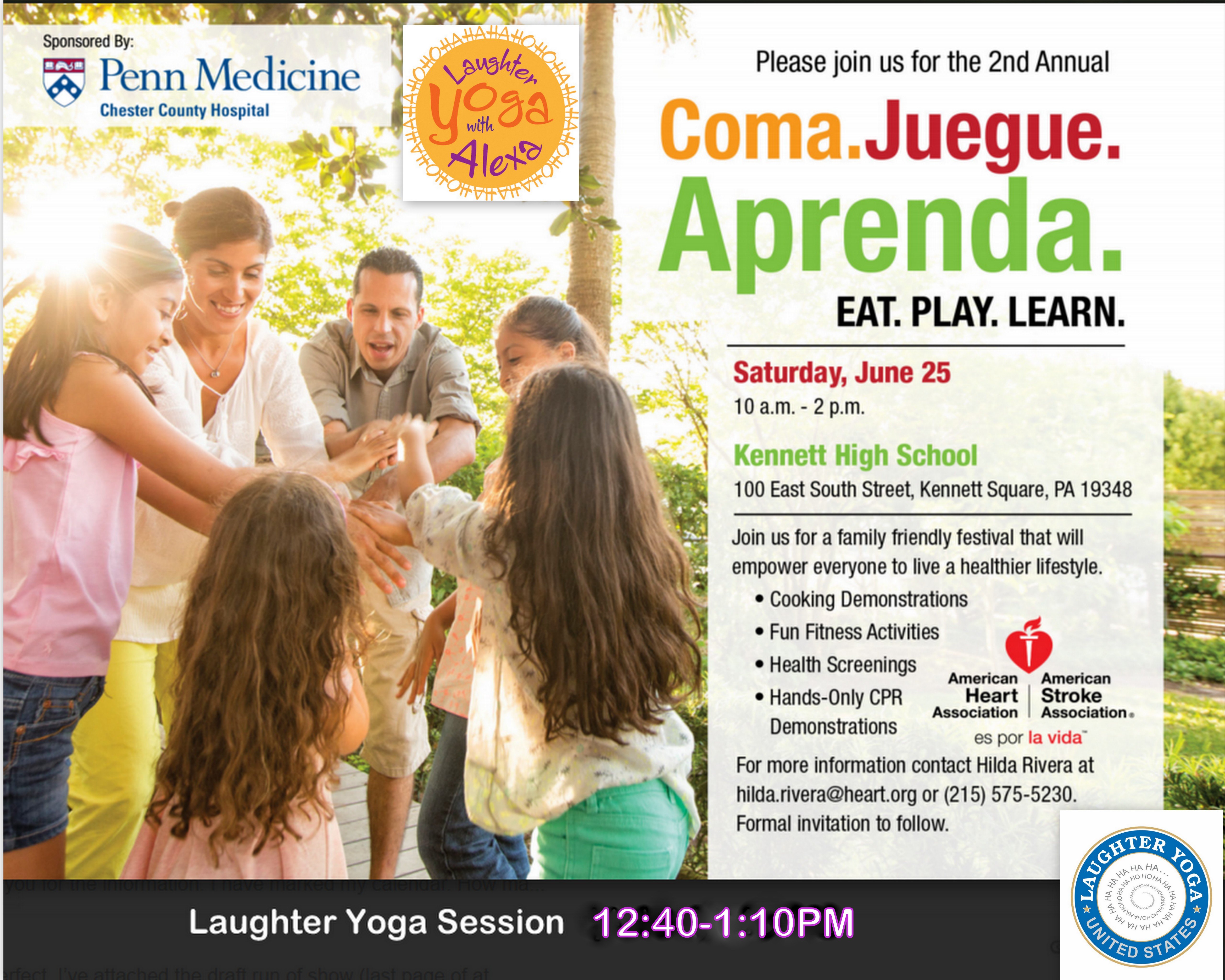 Alexa has shared Laughter Yoga with students at Middle Schools all the way up to Universities and at Medical Colleges. Students in particular, can benefit from the stress-relieving laughter exercises and will help to energize them before exams. Laughter Yoga stimulates the brain and regular practitioners report that it:
